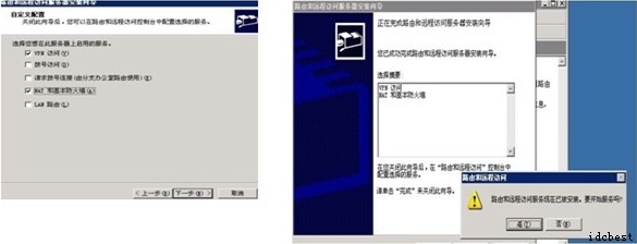 點擊開始,程序,管理工具,路由和遠(yuǎn)程訪問![]() 右擊本地計算機,配置并啟用路由和遠(yuǎn)程訪問右擊本地計算機,配置并啟用路由和遠(yuǎn)程訪問 ![]() 一般非單一需求的vpn可選擇自定義配置 ![]() 勾上vpn訪問,nat和基本防火墻,安裝好后詢問是否開始服務(wù),選 是 ![]() 然后打開本地計算機,右擊NAT/基本防火墻,選擇新增端口 ![]() 選擇本地連接,然后點擊公用接口連接到intelnet,并把啟用NAT的勾打上 ![]() 新建一個賬號,然后右擊屬性,點擊撥入,最后把允許訪問的勾打上 ![]() 測試vpn賬號 新建一個vpn連接 ![]() 輸入該服務(wù)器的ip地址 ![]() 完成后輸入vpn用戶名密碼測試 ![]() |