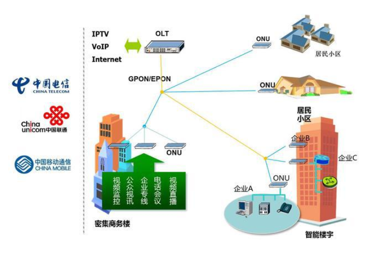 傳輸設(shè)備一般有:PON、PTN、SDH、波分、無線網(wǎng)橋、微波,現(xiàn)在常用的組網(wǎng)方式是通過PON網(wǎng)絡(luò)來組建,PON網(wǎng)絡(luò)中有以下幾種設(shè)備: