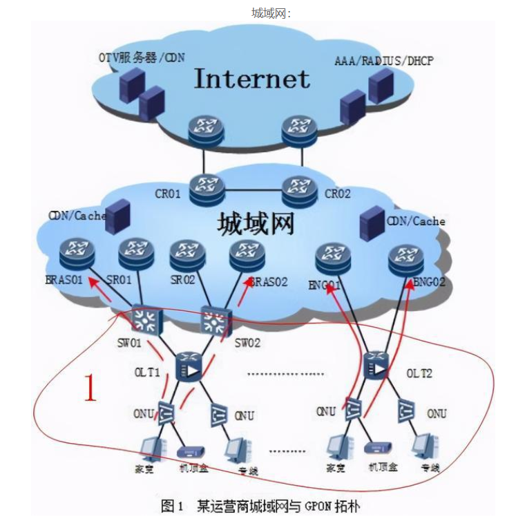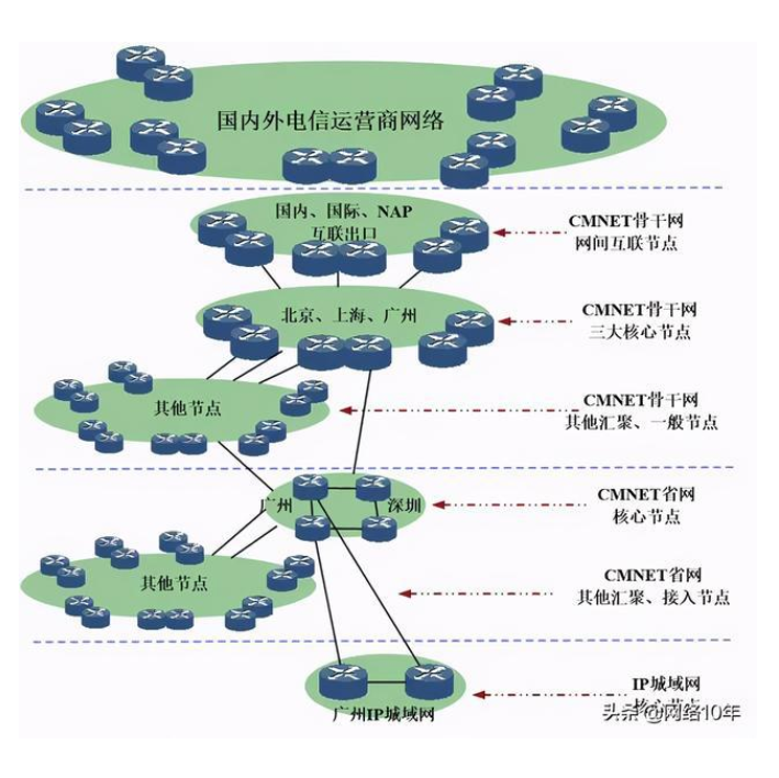 數(shù)據(jù)流要經(jīng)過幾個網(wǎng)絡(luò):傳輸網(wǎng)絡(luò)-城域網(wǎng)-省網(wǎng)-骨干網(wǎng)。