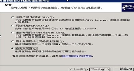 點擊開始,程序,管理工具,路由和遠(yuǎn)程訪問![]() 右擊本地計算機,配置并啟用路由和遠(yuǎn)程訪問右擊本地計算機,配置并啟用路由和遠(yuǎn)程訪問 ![]() 一般非單一需求的vpn可選擇自定義配置 ![]() 勾上vpn訪問,nat和基本防火墻,安裝好后詢問是否開始服務(wù),選 是 ![]() 然后打開本地計算機,右擊NAT/基本防火墻,選擇新增端口 ![]() 選擇本地連接,然后點擊公用接口連接到intelnet,并把啟用NAT的勾打上 ![]() 新建一個賬號,然后右擊屬性,點擊撥入,最后把允許訪問的勾打上 ![]() 測試vpn賬號 新建一個vpn連接 ![]() 輸入該服務(wù)器的ip地址 ![]() 完成后輸入vpn用戶名密碼測試 ![]() |